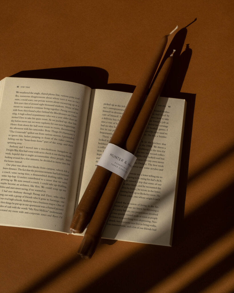 Handcrafted, and hand over dipped with an 8-9 hour burn time. Pairs perfectly with our tea light/taper candle holders!