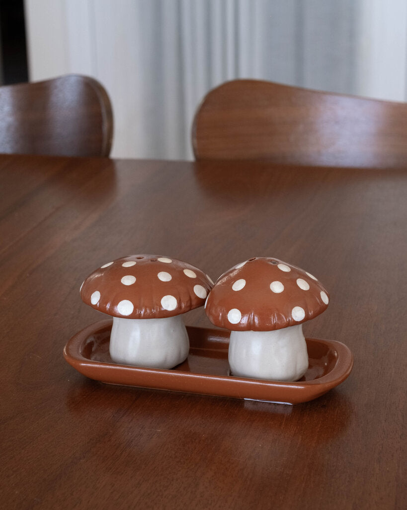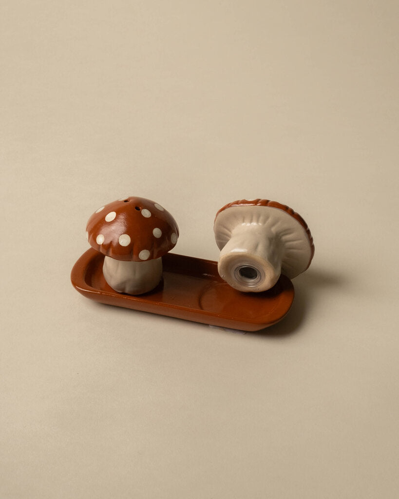 Mushroom Ceramic Salt + Pepper Set on Tray