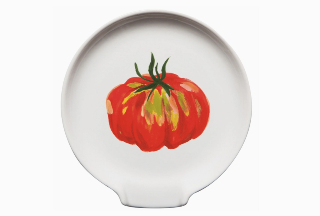 Playful colours of robust red and orange, sun-ripened yellow and green adorn the Heirloom Tomatoes Printed spoon. This delightful spoon rest is a welcome addition to any kitchen. A motif adds character, while a divot allows spoons to rest comfortably. Part of the Heirloom Tomatoes collection.